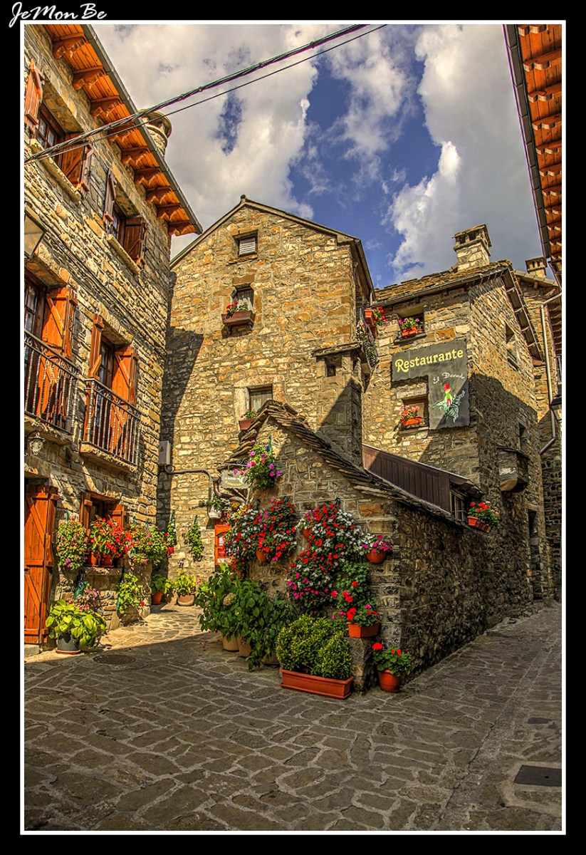Torla es puerta de acceso al valle de Ordesa perteneciente al Parque nacional de Ordesa y Monte Perdido, así como al valle de Broto. Se encuentra en el valle glaciar del río Ara, después de la confluencia de los valles de Bujaruelo (donde nace el río Ara) y el Ordesa (río Arazas). Un paseo por sus calles es adentrarse en el más puro medievo….la Plaza Mayor del siglo XIII, las casonas de los siglos XIII-XVIII, los escudos infanzones, espantabrujas, inscripciones, ventanas geminadas….un deleite para el visitante y el amante del buen arte.
