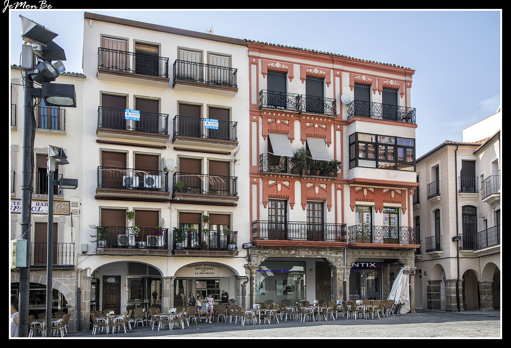 La plaza mayor se encuentra situada en el antiguo barrio de los mercaderes, es el lugar donde confluyen las pequeñas calles que como nervios rodean la plaza, es un espacio abierto donde se celebran los mejores mercados de Cáceres.