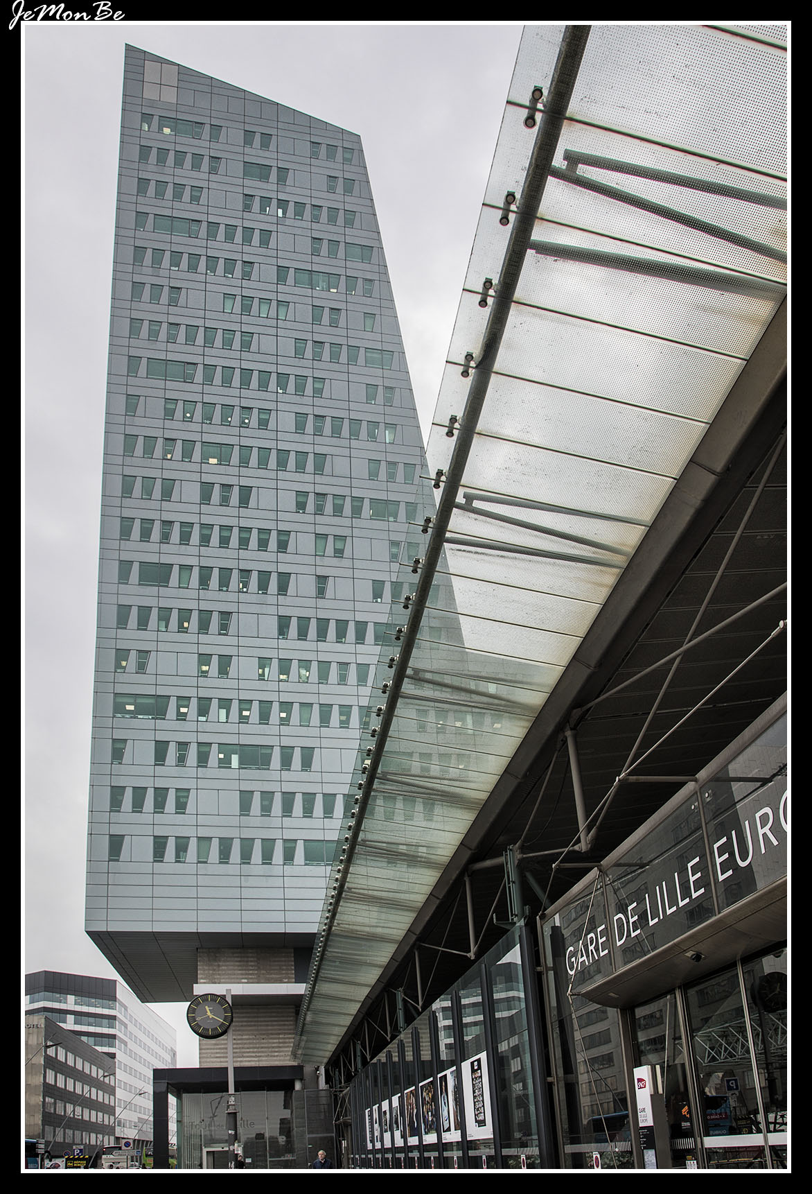Con 116 m de alto y una superficie de 18.135 m 2, domina la estación de Lille-Europa .