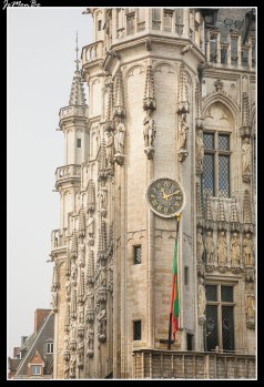 La torre de estilo gótico de 96 metros de altura tiene en su extremo una estatua del arcángel san Miguel, patrón de Bruselas, venciendo al Diablo.