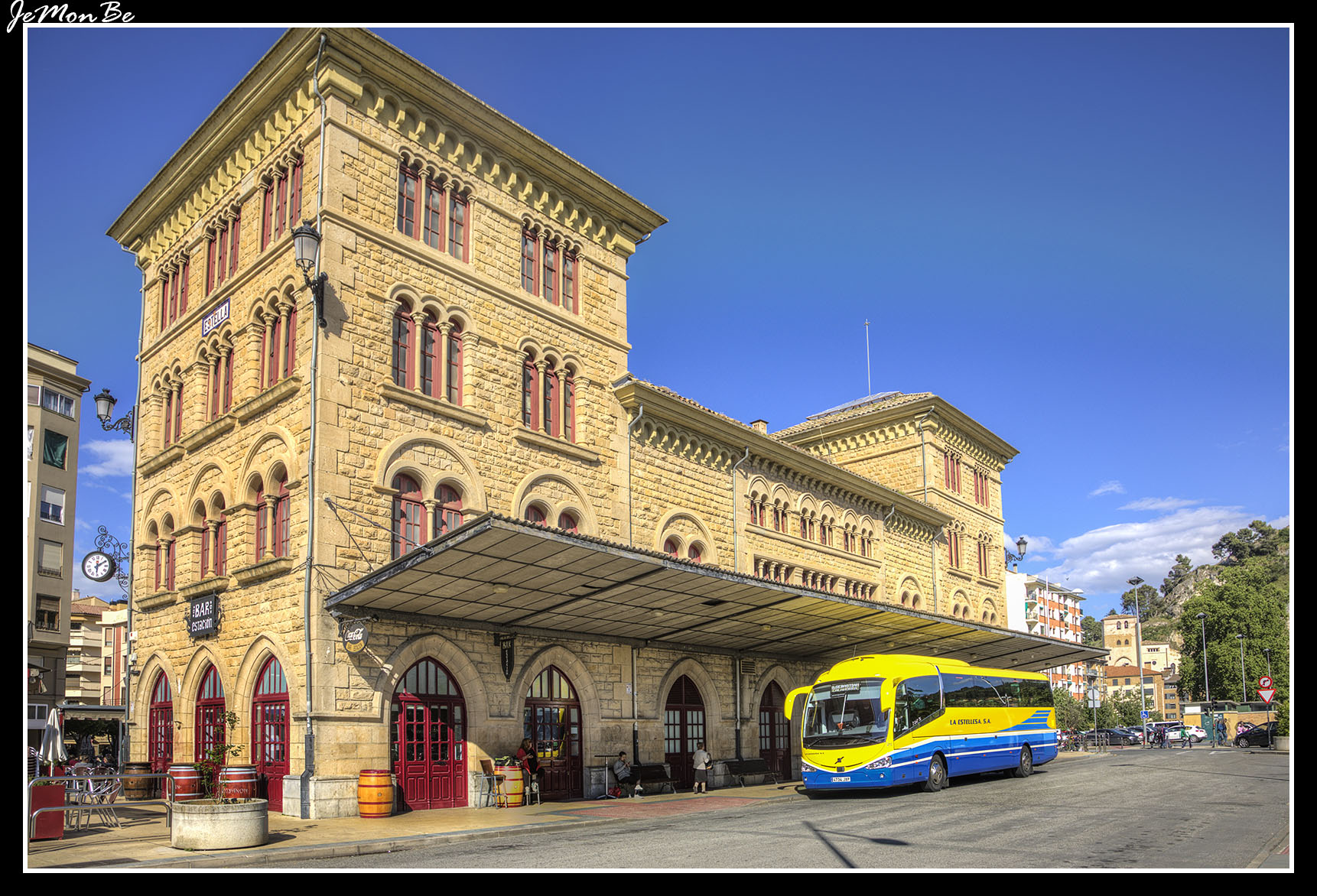 Imagen anterior Imagen siguiente 01 Estella El edificio está situado en la entrada de la zona comercial de Estella de Lizarra, frente al parque de Los Llanos. Era la estación del ferrocarril de vía estrecha, y actualmente la estación de autobuses e información y turismo.