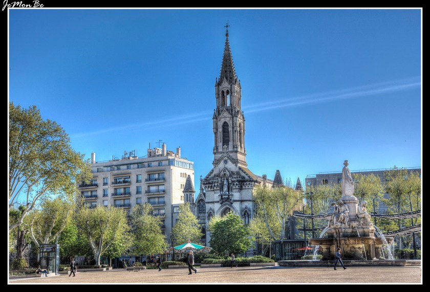 La explanada Charles de Gaulle es un espacio con una superficie total de 3 hectáreas. El elemento central es la fuente de Pradier, que representa en forma alegórica la ciudad de Nîmes, rodeada por cuatro ríos principales en la región de Nîmes. Al sur se encuentran bancos, jardines, plantas y árboles mediterráneos, así como pérgolas cubiertas de bambú. Varios quioscos, incluida una sucursal de la oficina de turismo, marcan el conjunto. Varios edificios importantes rodean la explanada: les Arènes al oeste, el palacio de justicia al norte o la iglesia Sainte-Perpétue y Sainte-Félicité al este.