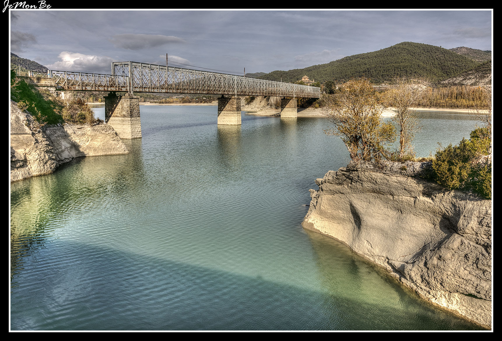 Llama la atención el puente que salva el vaso del embalse, para permitir el tráfico rodado, construido por Severino Bello siguiendo la arquitectura ferroviaria de la época y que tan sólo unos kilómetros más adelante, en La Peña Estación, se repite pero en esta ocasión para permitir al ferrocarril, el mítico ‘Canfranero’ salvar el cauce hacia (o desde) Riglos.