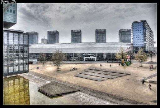 Imagen anterior Imagen siguiente 010 Eurolille En el distrito de la estación de tren, el centro comercial Euralille, diseñado por Jean Nouvel, alberga un centenar de tiendas, restaurantes y un hipermercado bajo sus líneas futuristas