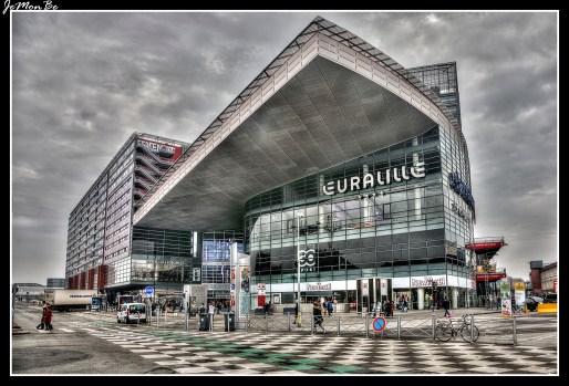 Imagen anterior Imagen siguiente 011 Eurolille En el distrito de la estación de tren, el centro comercial Euralille, diseñado por Jean Nouvel, alberga un centenar de tiendas, restaurantes y un hipermercado bajo sus líneas futuristas