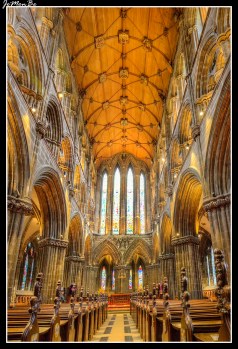 La Catedral de Glasgow, también conocida como High Kirk de Glasgow o la catedral de San Mungo. Fue consagrada en 1197. La catedral de Glasgow adoptó el culto protestante durante la reforma escocesa, lo que la salvó de la destrucción. Es un ejemplo de la arquitectura gótica pre-reformista.
