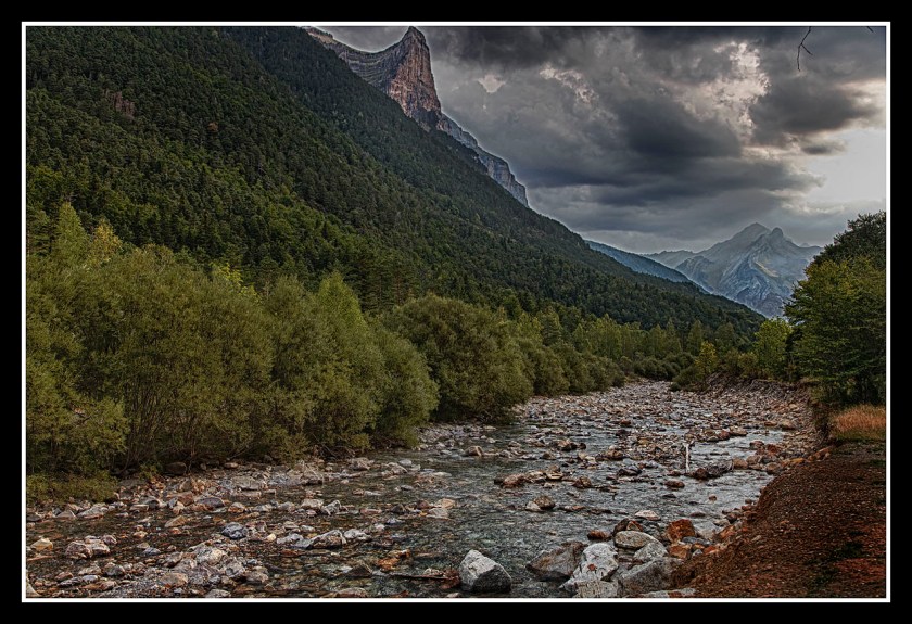 El río Arazas es un corto río del noreste de España, en la vertiente sur de los Pirineos, que nace en las faldas del macizo del Monte Perdido, forma el impresionante valle de Ordesa y tras recorrer 15 km desemboca en el río Ara, en el puente de los Navarros cerca de la localidad de Torla (Huesca). Toda su cuenca se encuentra incluida en el Parque Nacional de Ordesa y Monte Perdido. A la izquierda de la imagen podemos ver el Tozal de Mallo.