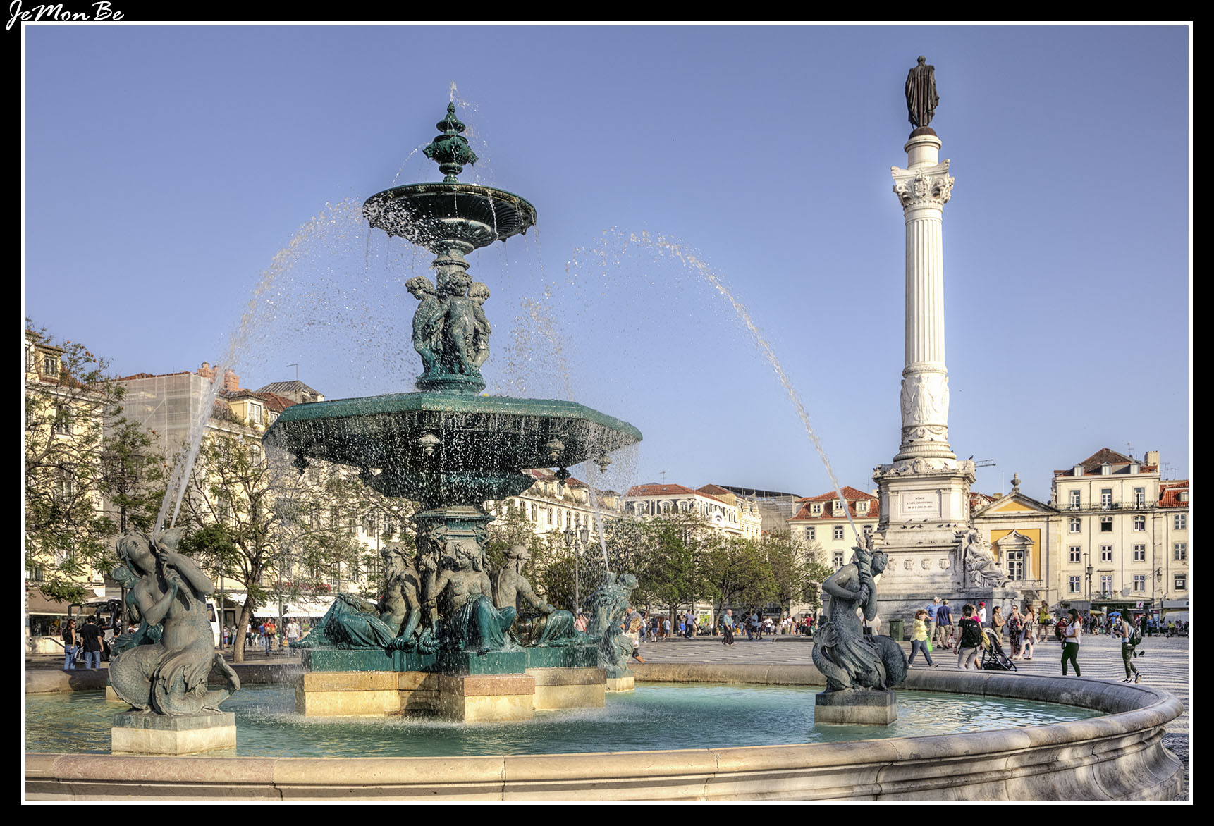 En el centro de la Plaza del Rossio se encuentra la estatua de Pedro IV de Portugal, El Rey Soldado. En su base cuatro figuras femeninas representan las bondades del rey.