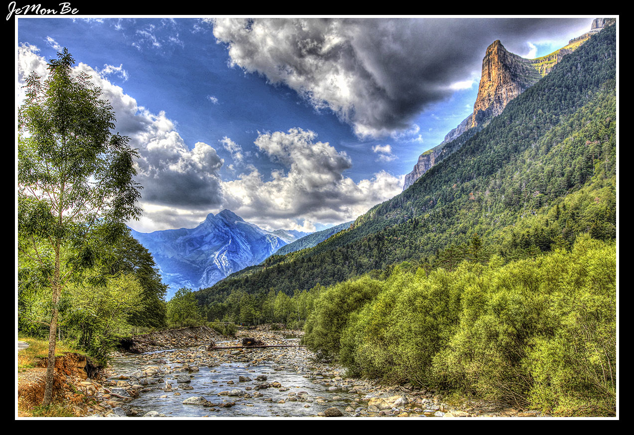 El río Arazas es un corto río del noreste de España, en la vertiente sur de los Pirineos, que nace en las faldas del macizo del Monte Perdido, forma el impresionante valle de Ordesa y tras recorrer 15 km desemboca en el río Ara, en el puente de los Navarros cerca de la localidad de Torla (Huesca). Toda su cuenca se encuentra incluida en el Parque Nacional de Ordesa y Monte Perdido. A la derecha de la imagen podemos ver el Tozal de Mallo.