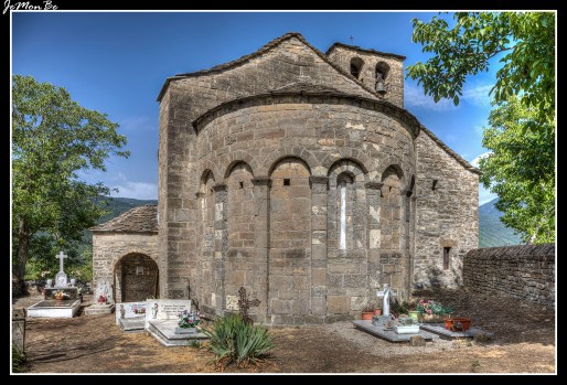 Presenta nave de planta rectangular y ábside semicircular, cubierto con bóveda de horno. En el muro sur se abren tres ventanas desiguales en arco de medio punto y la puerta similar, precedida de un atrio añadido en época moderna. En el exterior del ábside, que tiene contrafuertes en la zona de unión con la nave, hay siete arcadas murales, de las que destaca su cuidada elaboración, presentando la central una ventana abocinada de medio punto.