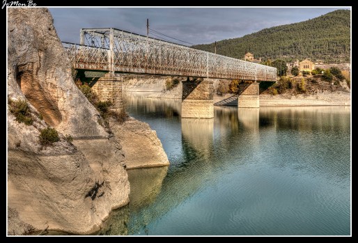 Llama la atención el puente que salva el vaso del embalse, para permitir el tráfico rodado, construido por Severino Bello siguiendo la arquitectura ferroviaria de la época y que tan sólo unos kilómetros más adelante, en La Peña Estación, se repite pero en esta ocasión para permitir al ferrocarril, el mítico ‘Canfranero’ salvar el cauce hacia (o desde) Riglos.
