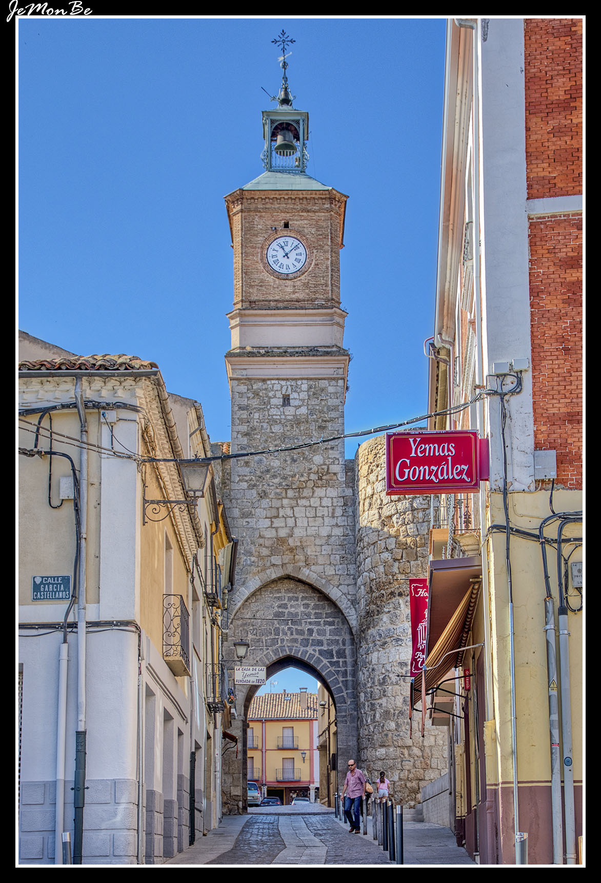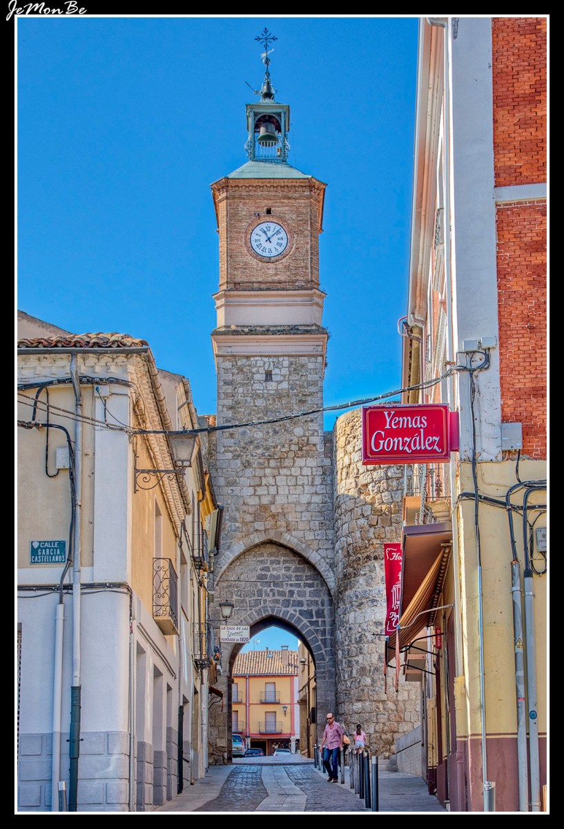 Dando paso a la Plaza Mayor de Almazán está la Puerta de la Villa que aparece flanqueada por torres cilíndricas con los arcos apuntados, conserva los huecos para las trancas del cierre de las puertas. A la Puerta de la Villa se le añadió la Torre del Reloj en 1886, pasando a conocerse también como la Puerta de la Torre del Reloj.