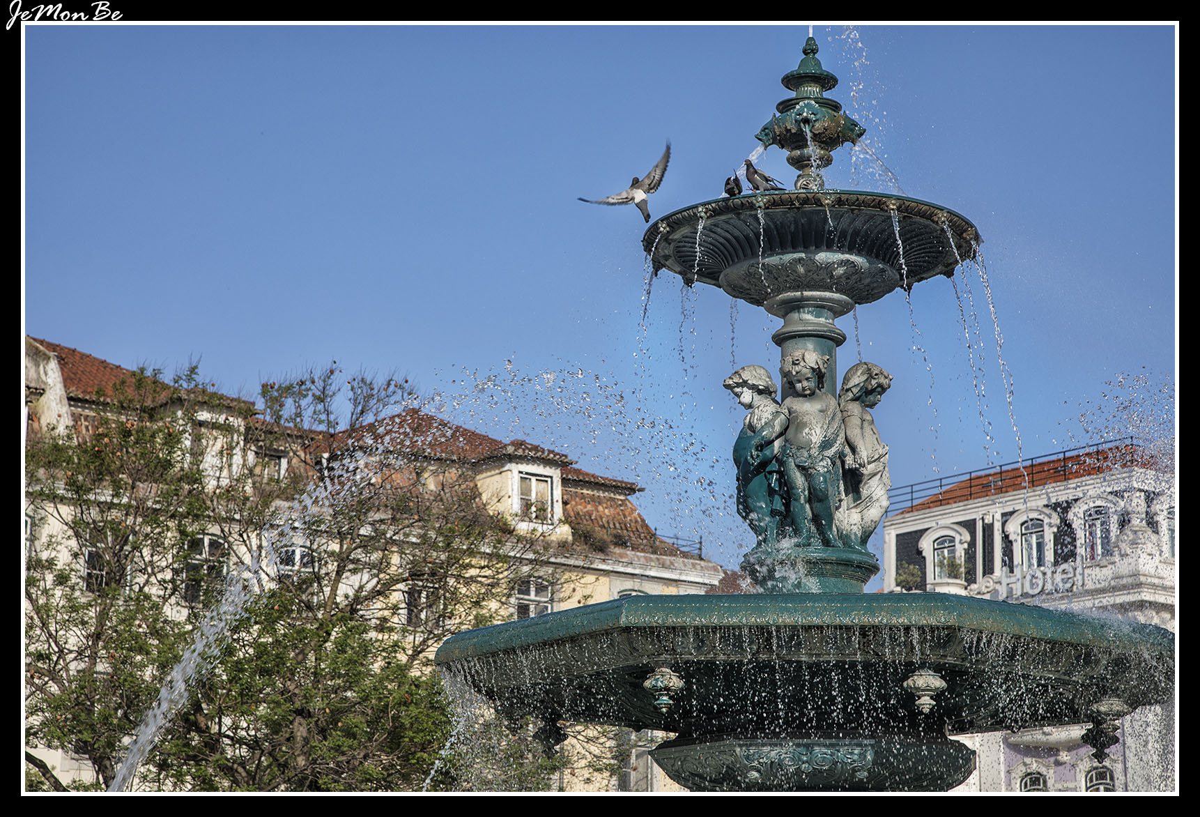 En el centro de la Plaza del Rossio se encuentra la estatua de Pedro IV de Portugal, El Rey Soldado. En su base cuatro figuras femeninas representan las bondades del rey.