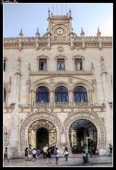La Estación de Rossio es la estación central de Lisboa. La fachada, de estilo neomanuelino, con dos grandes puertas de acceso con forma de herradura y una torre rematada por un reloj, elemento este último muy habitual en las estaciones ferroviarias de finales del XIX-principios del XX. El resultado del conjunto es una estación que, por su aspecto monumental, bien podría ser un teatro.