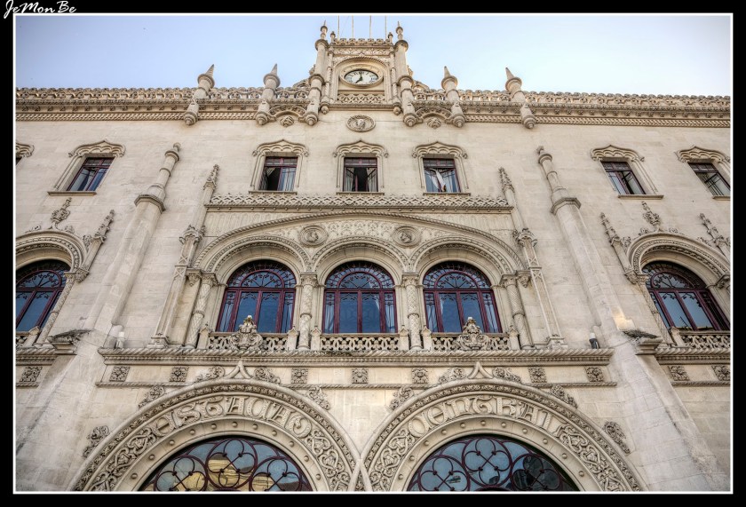 La Estación de Rossio es la estación central de Lisboa. La fachada, de estilo neomanuelino, con dos grandes puertas de acceso con forma de herradura y una torre rematada por un reloj, elemento este último muy habitual en las estaciones ferroviarias de finales del XIX-principios del XX. El resultado del conjunto es una estación que, por su aspecto monumental, bien podría ser un teatro.