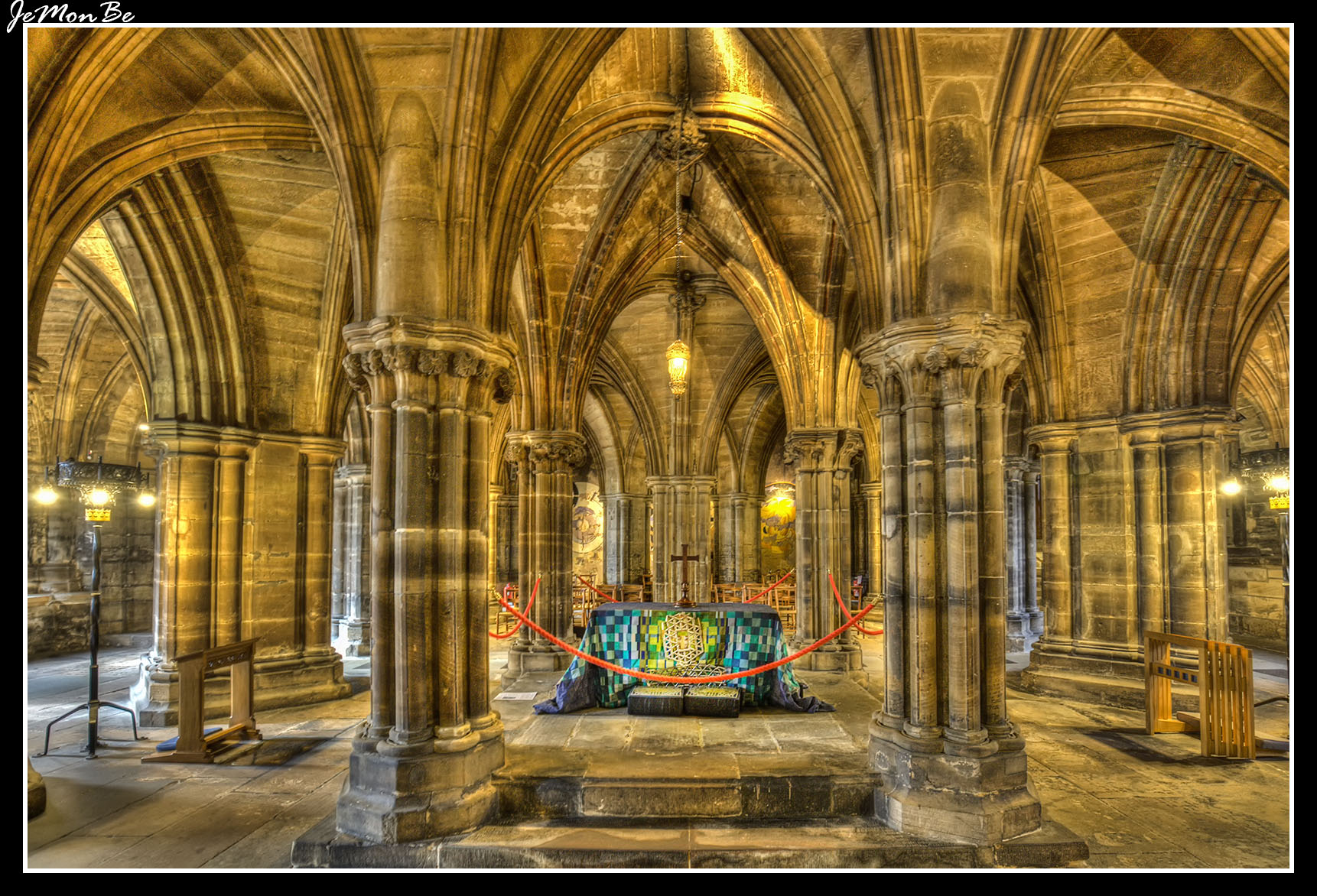 Tiene una cripta del siglo XIII a la que se accede por unas escaleras. La cripta es el sepulcro de San Mungo, fundador de una comunidad monástica en el mismo lugar en el siglo V; su tumba fue centro de una peregrinación medieval.