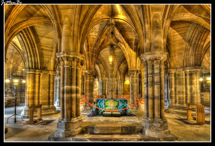 La Catedral de Glasgow, también conocida como High Kirk de Glasgow o la catedral de San Mungo. Fue consagrada en 1197. La catedral de Glasgow adoptó el culto protestante durante la reforma escocesa, lo que la salvó de la destrucción. Es un ejemplo de la arquitectura gótica pre-reformista.