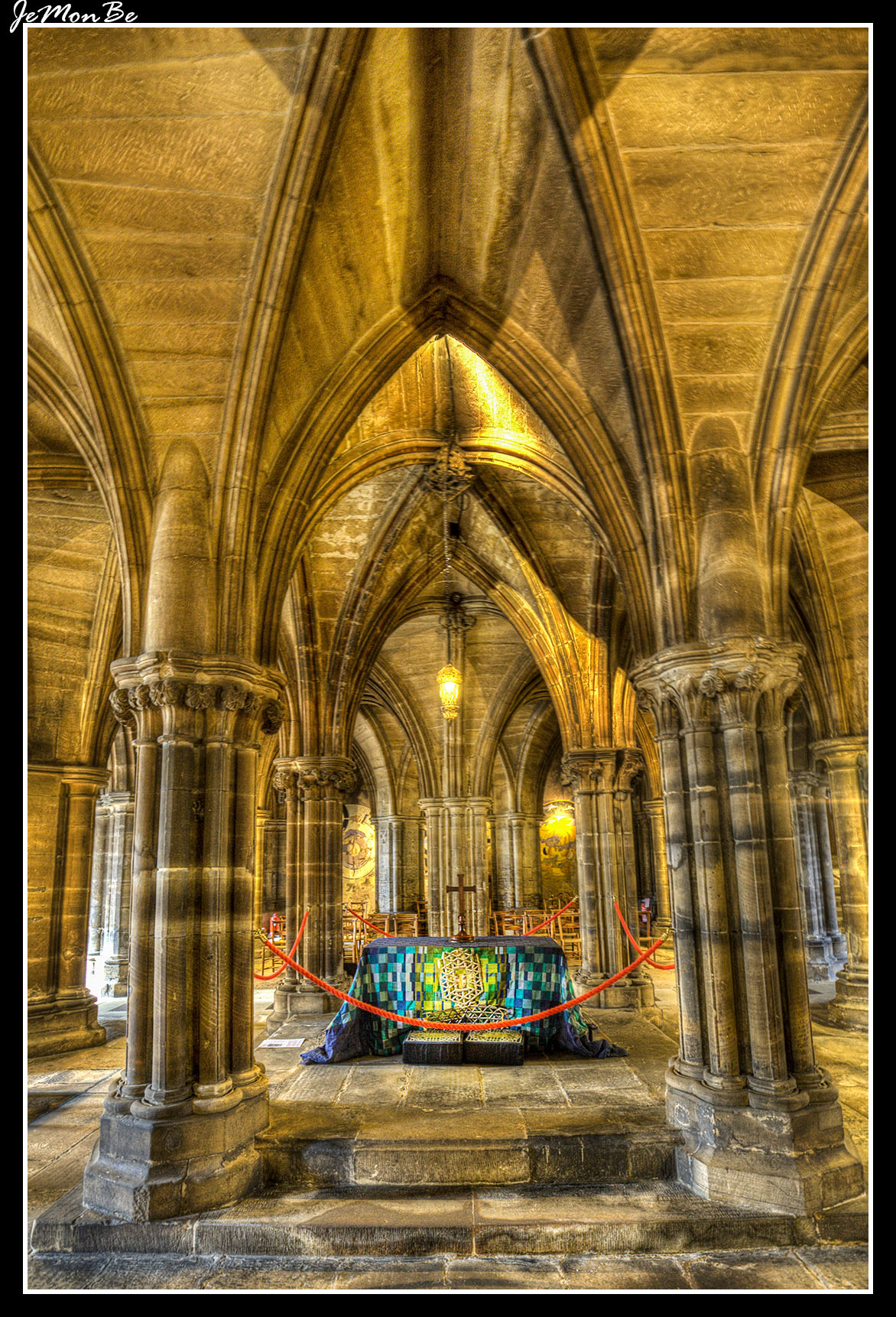 Tiene una cripta del siglo XIII a la que se accede por unas escaleras. La cripta es el sepulcro de San Mungo, fundador de una comunidad monástica en el mismo lugar en el siglo V; su tumba fue centro de una peregrinación medieval.