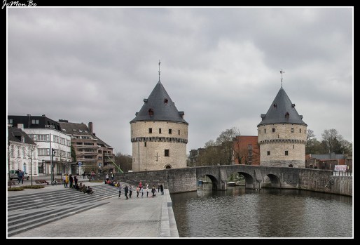 Broeltorens (Broelbrug): Estas torres gemelas de tres plantas, protegen el puente sobre el río Leie. Son parte de los últimos vestigios de las murallas medievales destruidas por Luis XIV de Francia en 1684. Están construidas con piedra caliza y arenisca. La del sur (Speytorre) fue construida en 1385 para controlar el tráfico en el Leie y era parte del recinto fortificado del primer castillo ducal de Kortrijk. La del norte (Inghelburghtorre), de 1415, sirvió como depósito de armas para la artillería. El puente Broel fue construido en 1385, destruido y reconstruido varias veces. En el centro del puente se encuentra la estatua de Johannes Nepomucemus, patrón de los ahogados.
