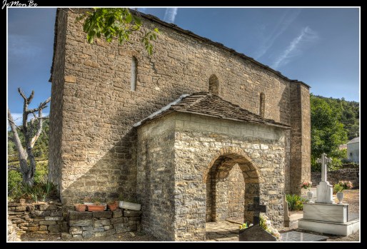 Presenta nave de planta rectangular y ábside semicircular, cubierto con bóveda de horno. En el muro sur se abren tres ventanas desiguales en arco de medio punto y la puerta similar, precedida de un atrio añadido en época moderna. En el exterior del ábside, que tiene contrafuertes en la zona de unión con la nave, hay siete arcadas murales, de las que destaca su cuidada elaboración, presentando la central una ventana abocinada de medio punto.