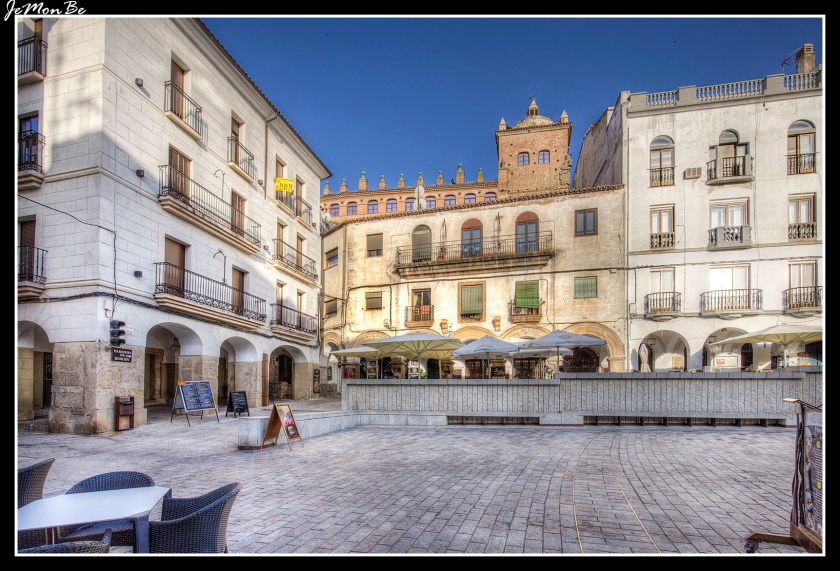 La Plaza Mayor a lo largo de la historia, ha tenido distintos usos y denominaciones: plaza de la feria, del mercado…, en muchas ocasiones se utilizó como coso taurino o para celebrar torneos, desfiles militares y procesiones de Semana Santa. Está rodeada de soportales y la preside el Ayuntamiento construido en 1869. En ella se pueden contemplar monumentos tan emblemáticos como la Torre de la Hierba, la de los Púlpitos y sobre todo la Torre de Bujaco junto a la Ermita de la Paz.