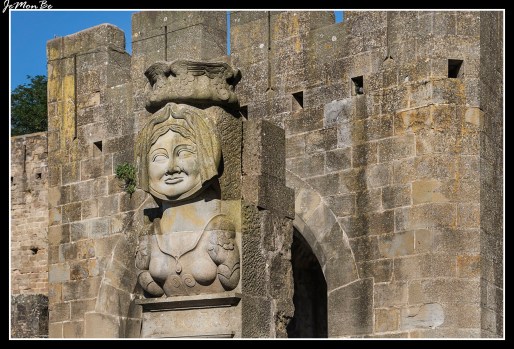 La entrada principal a la ciudad medieval de Carcasona es la Puerta de Narbona, orientada hacia la ciudad de la costa mediterránea que le da el nombre. Fue construida hacia 1280 durante el reinado de Felipe III de Francia y se compone de dos imponentes torres de tres niveles además de la planta baja, equipadas con un frente en forma de tajamar para el desvío de los proyectiles atacantes. La puerta de acceso está reforzada por un doble rastrillo y protegida por matacanes, desde donde se podían arrojar verticalmente objetos, y por troneras, para disparar proyectiles de manera protegida.