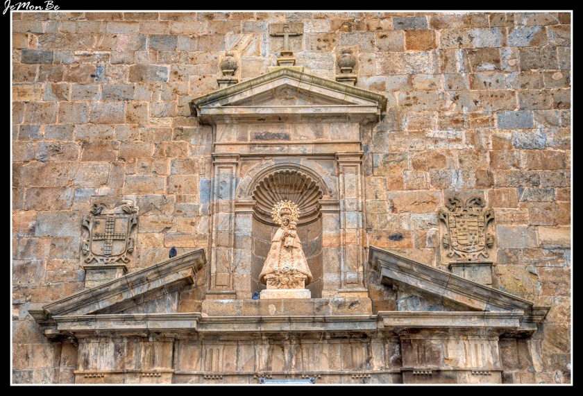 La iglesia de Nuestra Señora de los Milagros de Ágreda (Soria) fue construida con proporciones casi catedralicias, destacando las grandes dimensiones de su fachada o frontispicio, austero paramento carente de toda decoración y cuya severa monotonía pétrea sólo rompen, en los lados, dos robustos contrafuertes esquineros que cumplen la función adicional de torrecillas gemelas, y en la base, el vano de la portada principal, obra de cantería realizada en estilo post-herreriano y consistente en arco de ingreso de medio punto, dos pares de pilastras cajeadas, entablamiento clásico y frontón partido por nicho avenerado con frontoncillo que ocupa una talla en alabastro de la Virgen de los Milagros.