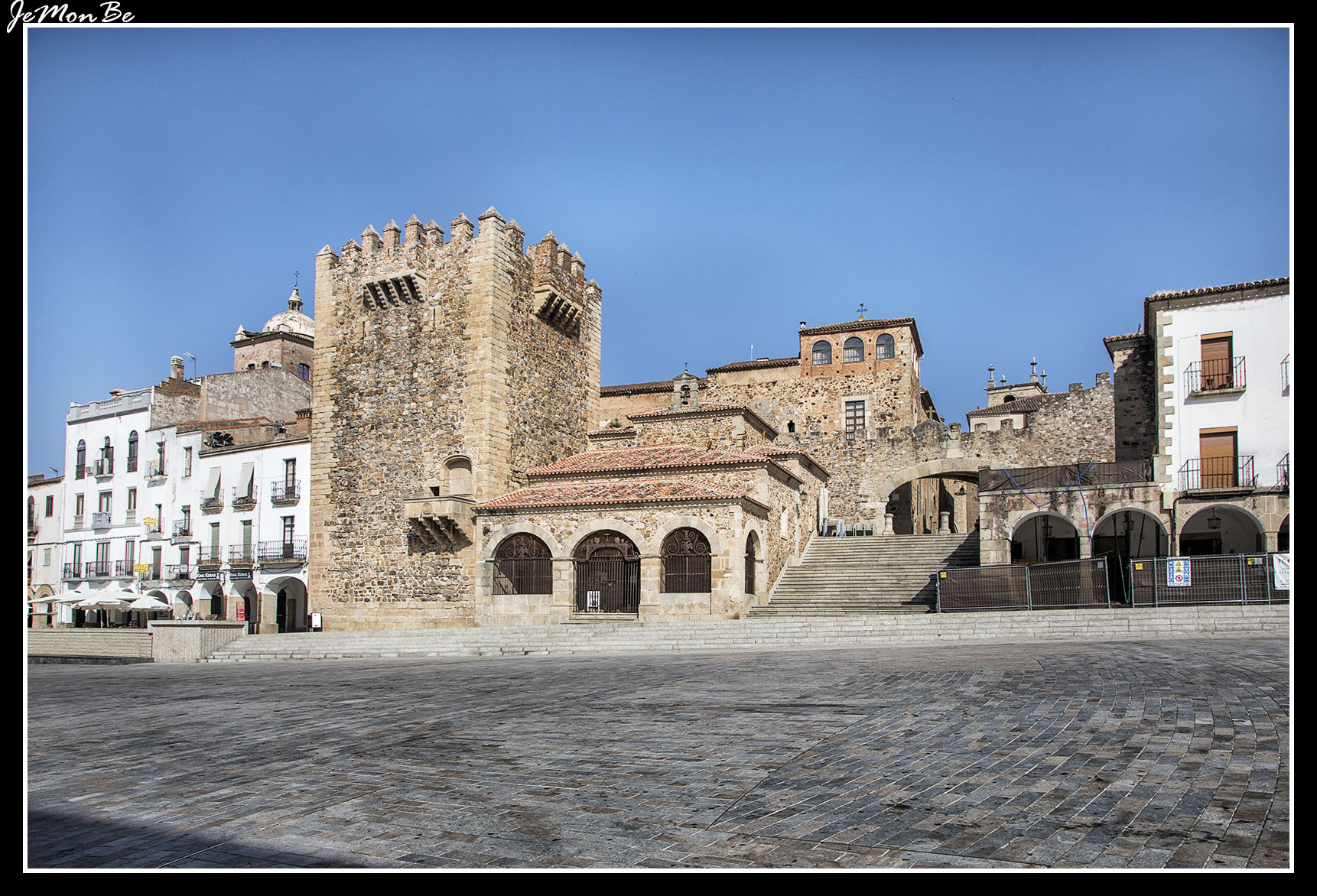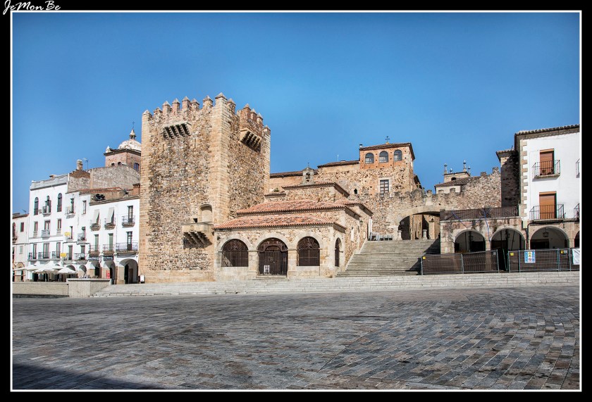 La Torre de Bujaco es la más importante de la ciudad y uno de los símbolos de Cáceres. También se la conoce con el nombre de Torre Nueva. Es de estilo árabe, construida en el siglo XII, sobre sillares romanos. Tiene planta cuadrada, con dos matacanes laterales y uno frontal, este último de estilo renacentista, añadido a la torre en el siglo XVIII. Su altura aproximada es 25 metros con remate de almenas.