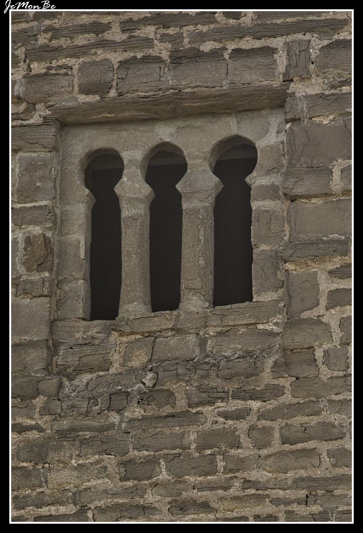 En el centro del muro orientado al sur, se abre la portada principal. Formada por dos arquivoltas en degradación, la exterior tiene sus dovelas decoradas por una inscripción en caracteres cúficos que dice “ilaha illa Allah’”, lo que en árabe significa “’no hay (otro) dios que Alá”.