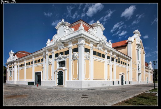 En la fachada principal los azulejos en azul y blanco fueron fabricados por la fábrica de Sacavém en 1922 y reproducen escenas heroicas de la historia portuguesa. El nombre es en honor del atleta portugués Carlos Lopes, ganador de la medalla de oro en la maratón de los Juegos Olímpicos de Los Ángeles