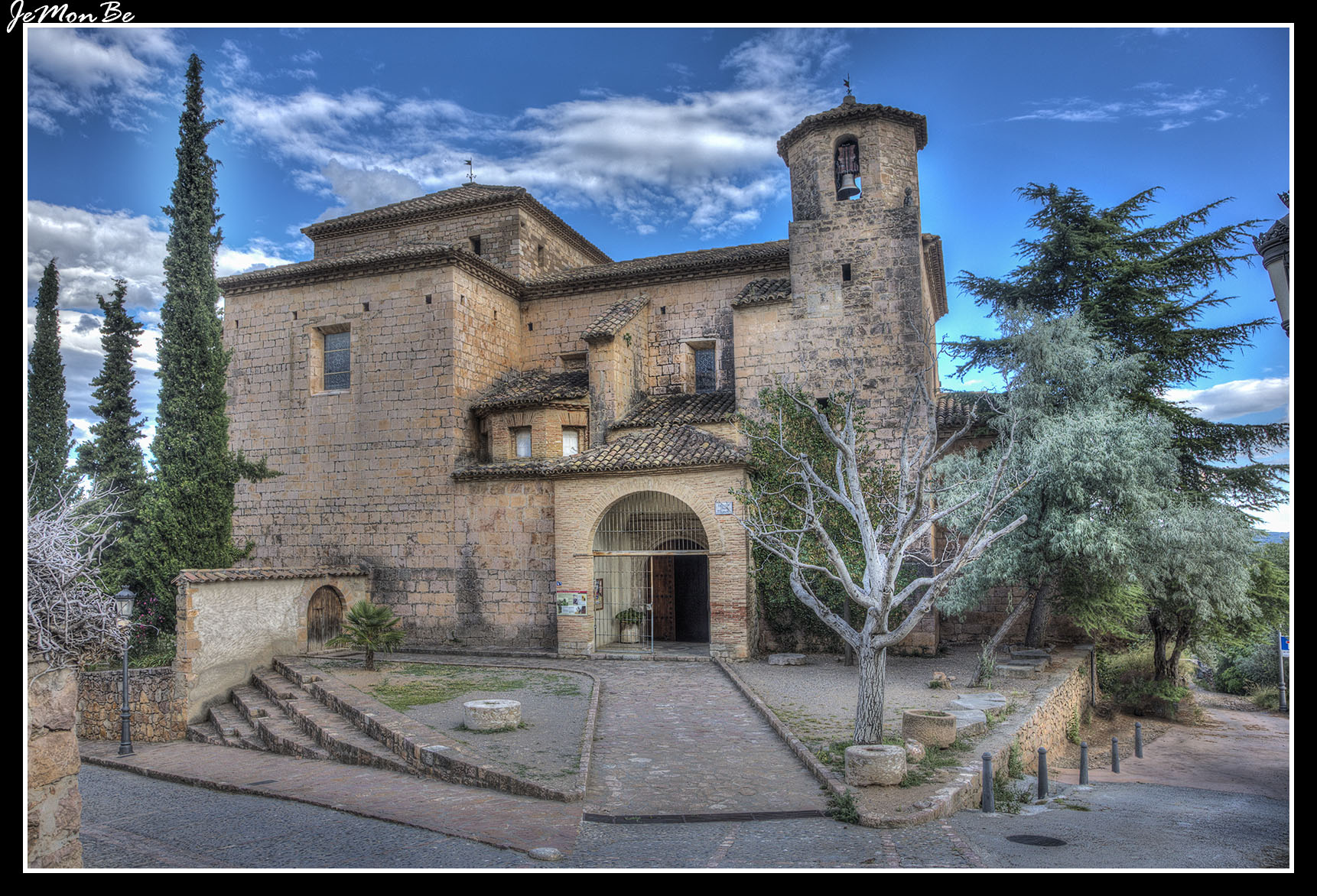 Está realizada con sillares de piedra y con elementos añadidos en ladrillo como el pórtico o las linternas de iluminación de las capillas.