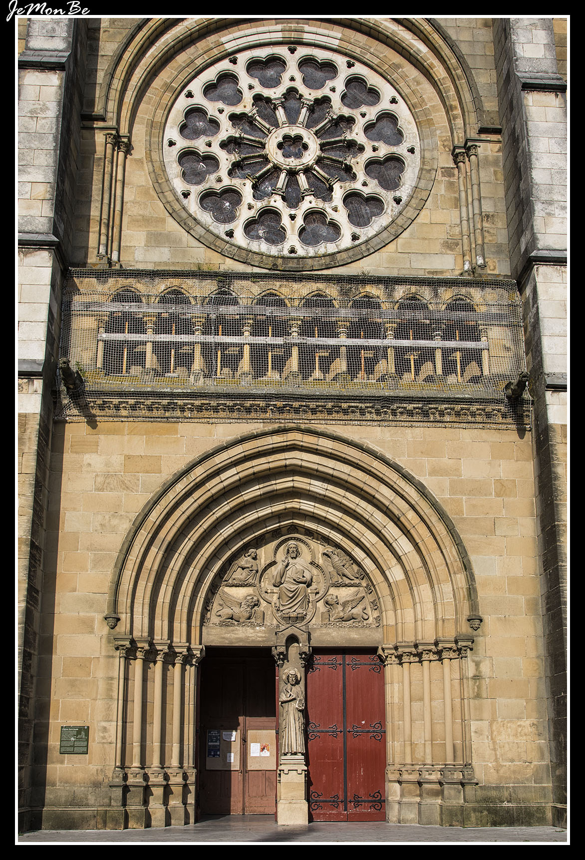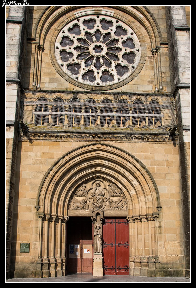 La iglesia de San Andrés de Bayona. Es un templo construido en la segunda mitad del siglo XIX (1846-1869) por Hippolyte Durand y Hippolyte Guichenné. Es un edificio de piedra de sillería, cuya fachada principal está formada por tres cuerpos de tres alturas separados por contrafuertes. En el primer nivel se abren tres vanos apuntados formados por varias arquivoltas. El vano central es la puerta de entrada, dividida por un parteluz en el que se encuentra una escultura de San Andrés. En el tímpano de la puerta aparece la imagen de Cristo, rodeada por los símbolos de los cuatro evangelistas: el toro, el águila, el ángel y el león. En el segundo nivel se abren varios vanos. En los laterales hay dos arcos apuntados y, sobre ellos, un vano circular lobulado. En el cuerpo central destaca un gran rosetón. Los dos primeros niveles están separados por una sucesión de arcos ojivales. En el tercer nivel de las torres se ven vanos de medio punto cerrados por lamas. El cuerpo central tiene un remate triangular coronado por una cruz de piedra.