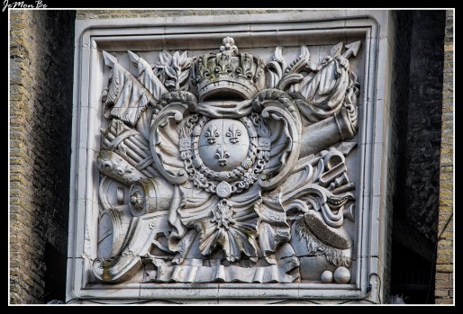 Imagen anterior Imagen siguiente 07 Bergues puerta de Cassel La puerta de Cassel, de aspecto muy clásico, data de la conquista francesa (1668). Es por eso que el sol radiante de Luis XIV aparece bajo el frontón triangular.