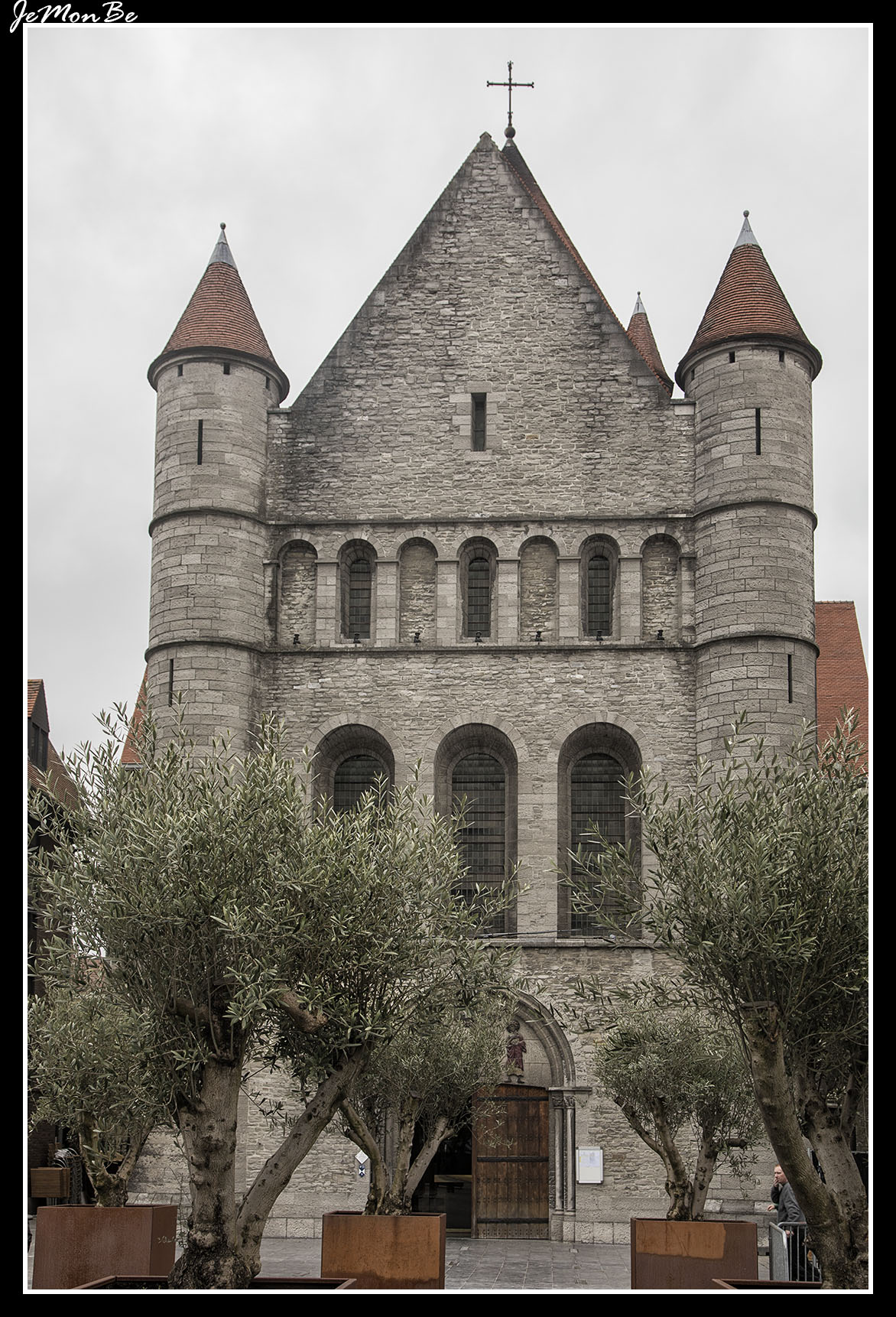 La Iglesia de San Quintín, construida en el siglo XIII, es una iglesia muy llamativa, especialmente por la mezcla del gris imponente de sus muros y el rojo intenso del tejado. El estilo es una transición del románico al gótico. Prácticamente todo el conjunto de la iglesia, incluida la torre, pertenecen al siglo XIII, a excepción de la nave central, que data de finales del XII. Se cree que, antes de la construcción de la iglesia, se hallaba en su lugar un antiguo cementerio galo-romano, que ocupaba parte de la plaza y uno de los barrios adyacentes Su aspecto imponente y el colorido de su tejado la asemejan a primera vista a una pequeña fortaleza medieval.