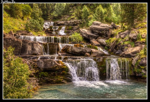 Imagen anterior Imagen siguiente 070 Ordesa Gradas de Soaso Las Gradas de Soaso son una sucesión de cascadas que todas juntas forman una sucesión de saltos y pozas más o menos espectaculares según el caudal del Arazas.