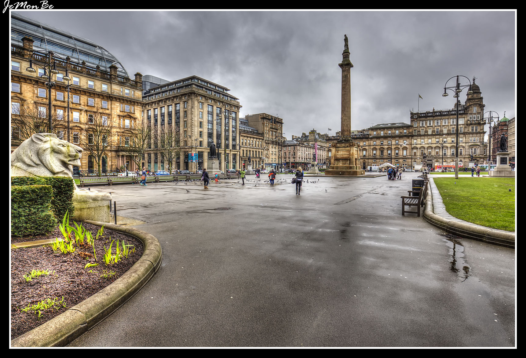 George Square es la plaza principal de Glasgow. Recibe su nombre del rey Jorge III. Trazada en 1781, George Square contiene en la actualidad el Ayuntamiento de Glasgow y una importante colección de estatuas y monumentos, el lado este de la plaza está dominado por el majestuoso Edificio del Ayuntamiento de Glasgow, que se inauguró en 1888. En el lado sur hay varios edificios, incluida la antigua General Post Office, construida en 1878, un edificio de oficinas de estilo Chicago que data de 1924 y la oficina de turismo principal de la ciudad.