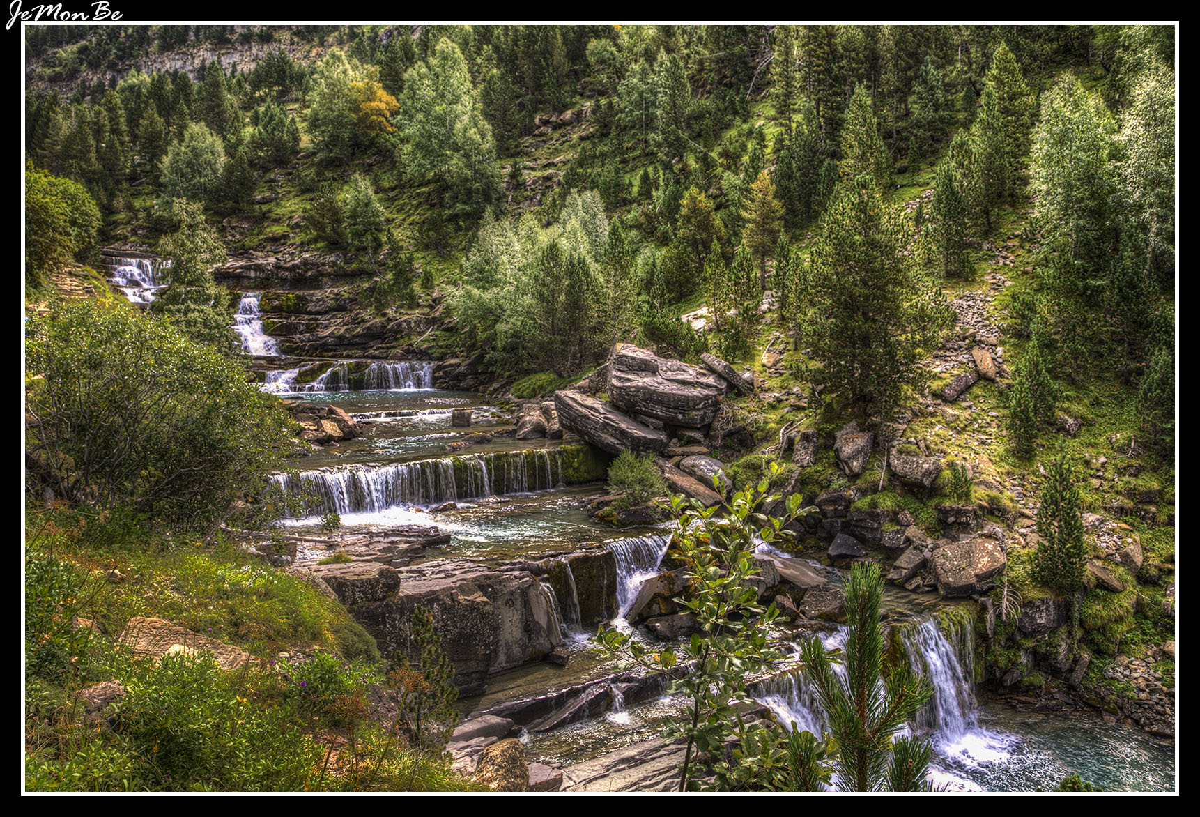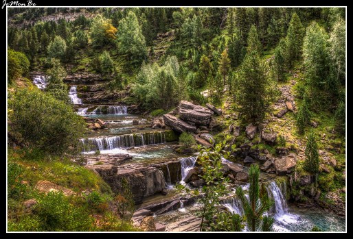 Imagen anterior Imagen siguiente 073 Ordesa Gradas de Soaso Las Gradas de Soaso son una sucesión de cascadas que todas juntas forman una sucesión de saltos y pozas más o menos espectaculares según el caudal del Arazas.