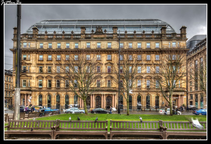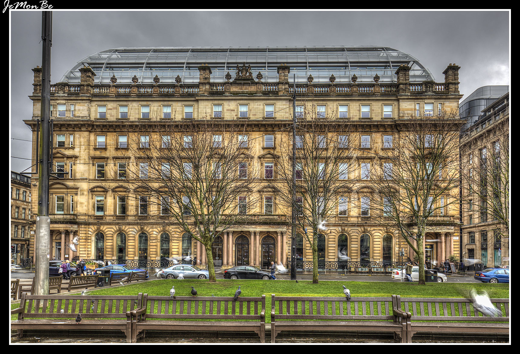 George Square es la plaza principal de Glasgow. Recibe su nombre del rey Jorge III. Trazada en 1781, George Square contiene en la actualidad el Ayuntamiento de Glasgow y una importante colección de estatuas y monumentos, el lado este de la plaza está dominado por el majestuoso Edificio del Ayuntamiento de Glasgow, que se inauguró en 1888. En el lado sur hay varios edificios, incluida la antigua General Post Office, construida en 1878, un edificio de oficinas de estilo Chicago que data de 1924 y la oficina de turismo principal de la ciudad.