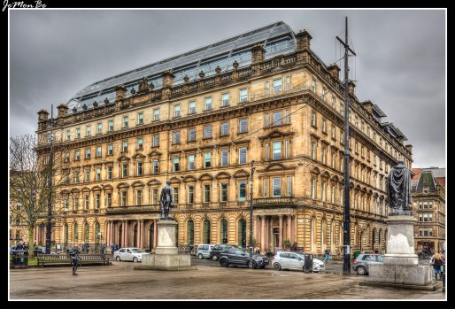 George Square es la plaza principal de Glasgow. Recibe su nombre del rey Jorge III. Trazada en 1781, George Square contiene en la actualidad el Ayuntamiento de Glasgow y una importante colección de estatuas y monumentos, el lado este de la plaza está dominado por el majestuoso Edificio del Ayuntamiento de Glasgow, que se inauguró en 1888. En el lado sur hay varios edificios, incluida la antigua General Post Office, construida en 1878, un edificio de oficinas de estilo Chicago que data de 1924 y la oficina de turismo principal de la ciudad.