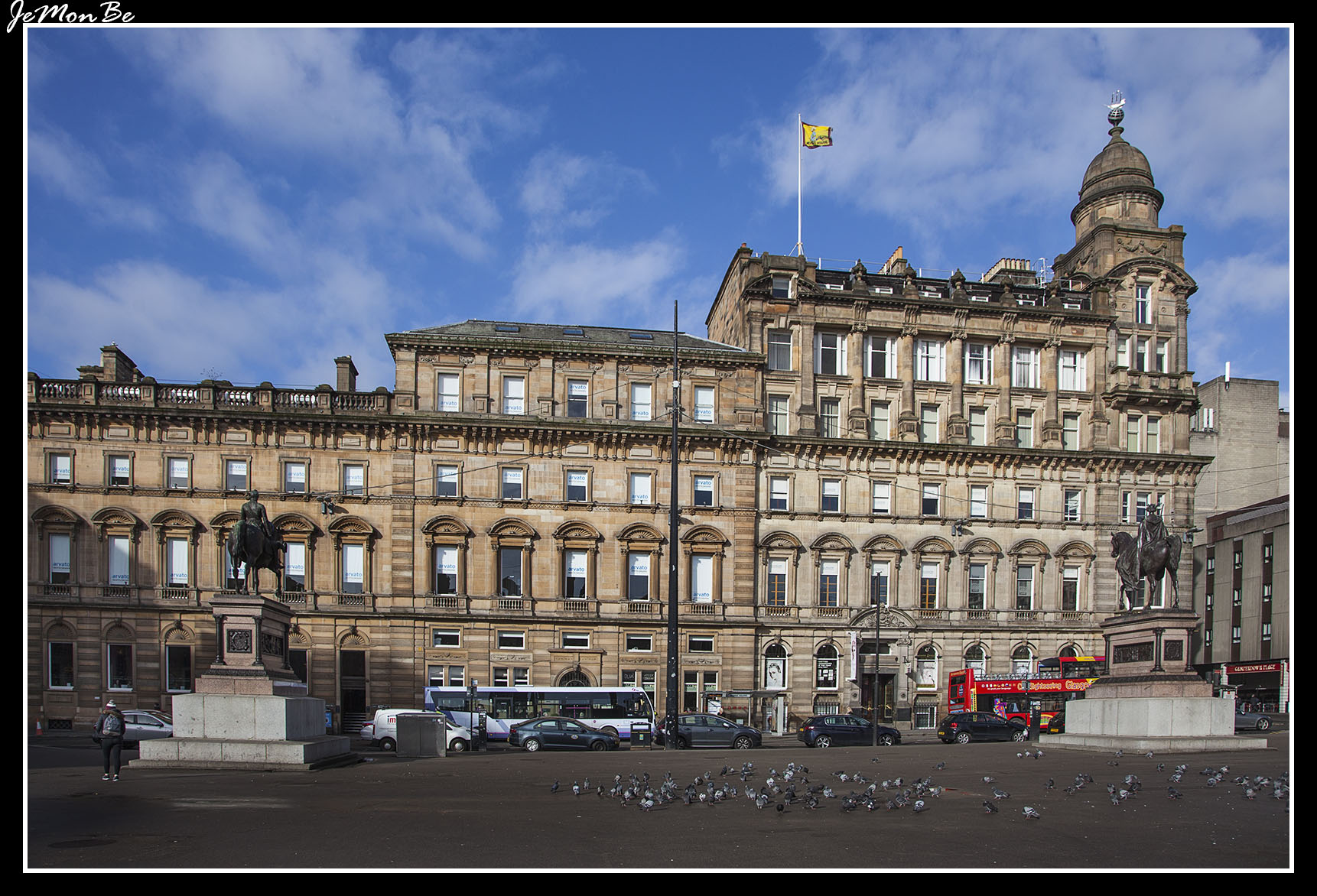 George Square es la plaza principal de Glasgow. Recibe su nombre del rey Jorge III. Trazada en 1781, George Square contiene en la actualidad el Ayuntamiento de Glasgow y una importante colección de estatuas y monumentos, el lado este de la plaza está dominado por el majestuoso Edificio del Ayuntamiento de Glasgow, que se inauguró en 1888. En el lado sur hay varios edificios, incluida la antigua General Post Office, construida en 1878, un edificio de oficinas de estilo Chicago que data de 1924 y la oficina de turismo principal de la ciudad.