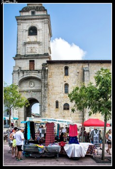 El campanario tiene una altura de 45m y en su fachada presenta un cuadrante solar con la inscripción siguiente en latín: “Vulnerant omnes, ultima necat” que puede traducirse como “todas las horas hieren, la última mata”. El interior de la iglesia es el típico de las iglesias del País Vasco con sus tres pisos de galerías a los que por tradición sólo los hombres podían acceder.