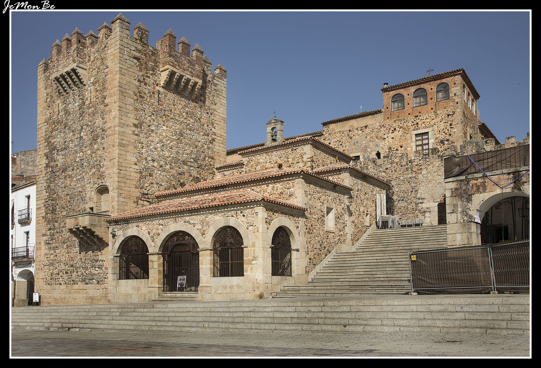 La Torre de Bujaco es la más importante de la ciudad y uno de los símbolos de Cáceres. También se la conoce con el nombre de Torre Nueva. Es de estilo árabe, construida en el siglo XII, sobre sillares romanos. Tiene planta cuadrada, con dos matacanes laterales y uno frontal, este último de estilo renacentista, añadido a la torre en el siglo XVIII. Su altura aproximada es 25 metros con remate de almenas.