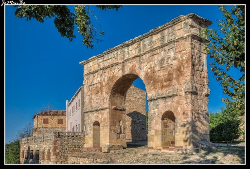 El arco romano de Medinacelli es el único arco romano de triple arquería que se conserva en España. Sigue el modelo del arco de Trajano y presenta una decoración muy simple pero efectiva. Su conservación es aceptable salvo su decoración que está muy desgastada debido a la situación geográfica en la que se encuentra. Su fábrica es de Opus Quadratum de tamaño variable, colocados a soga y algunos a tizón. Sobre ellos se labraron todos los elementos decorativos. El tamaño del conjunto mide 13’20 m. de largo, 2’10 m. de ancho y 8’10 m. de altura. Servía, además de su función conmemorativa, de puerta de acceso a la ciudad. El arco central era paso de carruajes y animales y los laterales de los peatones.