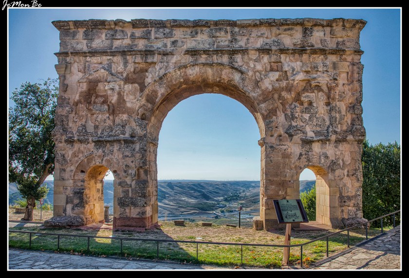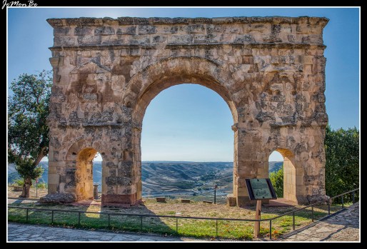 El arco romano de Medinacelli es el único arco romano de triple arquería que se conserva en España. Sigue el modelo del arco de Trajano y presenta una decoración muy simple pero efectiva. Su conservación es aceptable salvo su decoración que está muy desgastada debido a la situación geográfica en la que se encuentra. Su fábrica es de Opus Quadratum de tamaño variable, colocados a soga y algunos a tizón. Sobre ellos se labraron todos los elementos decorativos. El tamaño del conjunto mide 13’20 m. de largo, 2’10 m. de ancho y 8’10 m. de altura. Servía, además de su función conmemorativa, de puerta de acceso a la ciudad. El arco central era paso de carruajes y animales y los laterales de los peatones.