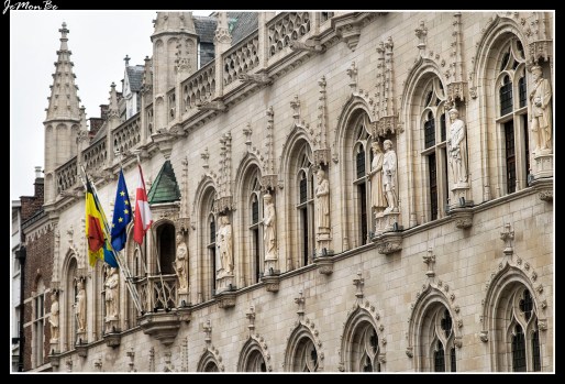 El Historisch Stadhuis, edificio gótico flamígero de 1421. Presenta una elaborada fachada con agujas de piedra y estatuas en hornacinas. En las vidrieras se ve esculpido el escudo de la ciudad y los trabajadores del principal gremio textil que existió en Kortrijk en el siglo XIII.