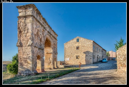 El arco romano de Medinacelli es el único arco romano de triple arquería que se conserva en España. Sigue el modelo del arco de Trajano y presenta una decoración muy simple pero efectiva. Su conservación es aceptable salvo su decoración que está muy desgastada debido a la situación geográfica en la que se encuentra. Su fábrica es de Opus Quadratum de tamaño variable, colocados a soga y algunos a tizón. Sobre ellos se labraron todos los elementos decorativos. El tamaño del conjunto mide 13’20 m. de largo, 2’10 m. de ancho y 8’10 m. de altura. Servía, además de su función conmemorativa, de puerta de acceso a la ciudad. El arco central era paso de carruajes y animales y los laterales de los peatones.