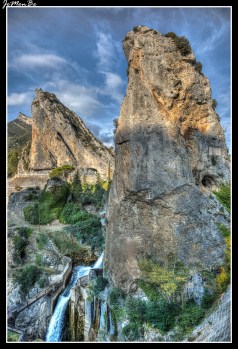 Llama la atención el puente que salva el vaso del embalse, para permitir el tráfico rodado, construido por Severino Bello siguiendo la arquitectura ferroviaria de la época y que tan sólo unos kilómetros más adelante, en La Peña Estación, se repite pero en esta ocasión para permitir al ferrocarril, el mítico ‘Canfranero’ salvar el cauce hacia (o desde) Riglos.