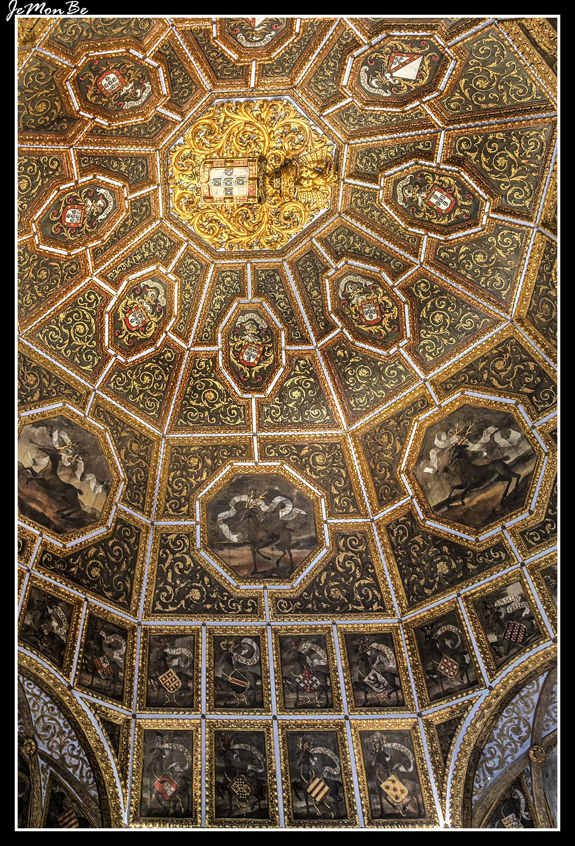 Imagen anterior Imagen siguiente Palacio Nacional de Sintra La cúpula de la Sala de los Blasones, del primer cuarto del s. XVI, representa todavía hoy la principal fuente consultada por portugueses y lusodescendientes de todo el mundo