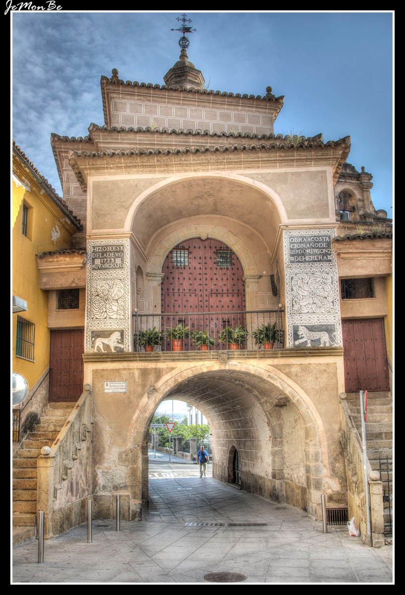 La puerta esta construida para la comunicación que tenía el camino de real con la ciudad de Trujillo. Sobre la puerta se construyo la ermita de la Virgen de la Salud.