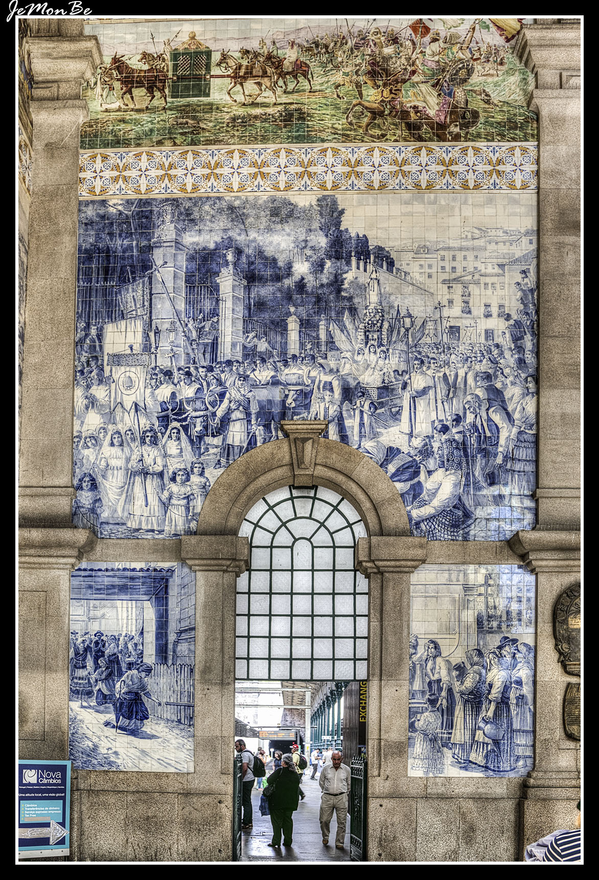 Aunque ya de entrada su fachada es señorial, la verdadera joya se encuentra en su interior: un hall decorado con más de 20.000 azulejos en los que se retrata la historia de Portugal.